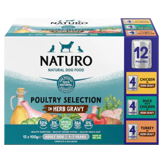 4 x Naturo Adult Dog Pouch Selection Gravy 12 Pack - 12X100GM