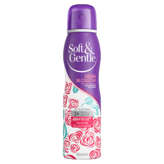 Introducing the Soft & Gentle Fresh Blossom deodorant, available in a convenient 150ML size. This gentle yet effective deodorant is designed to keep you feeling fresh and confident all day long. With its delightful Fresh Blossom scent, it provides a burst of floral fragrance that will leave you feeling revitalized. The formula is specially created to be kind to your skin, offering 48-hour protection against odor and wetness. Say goodbye to unpleasant body odor and hello to a refreshing floral experience with Soft & Gentle Fresh Blossom deodorant.