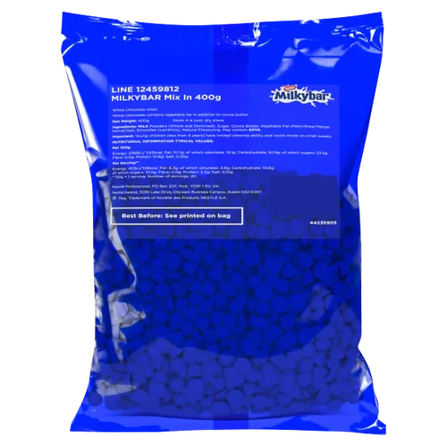 Each Milkybar Mix In bar is individually wrapped, making it convenient for on-the-go snacking or sharing with friends and family. The 400G pack contains 8 bars, ensuring you have plenty to enjoy or share with loved ones.
